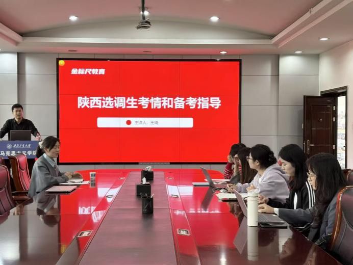 邀请金标尺教育机构专业讲师王琦在学院楼208会议室举办“陕西选调生考情和备考指导”专题讲座。讲座由硕士生辅导员王换主持,学院硕士研究生参加。