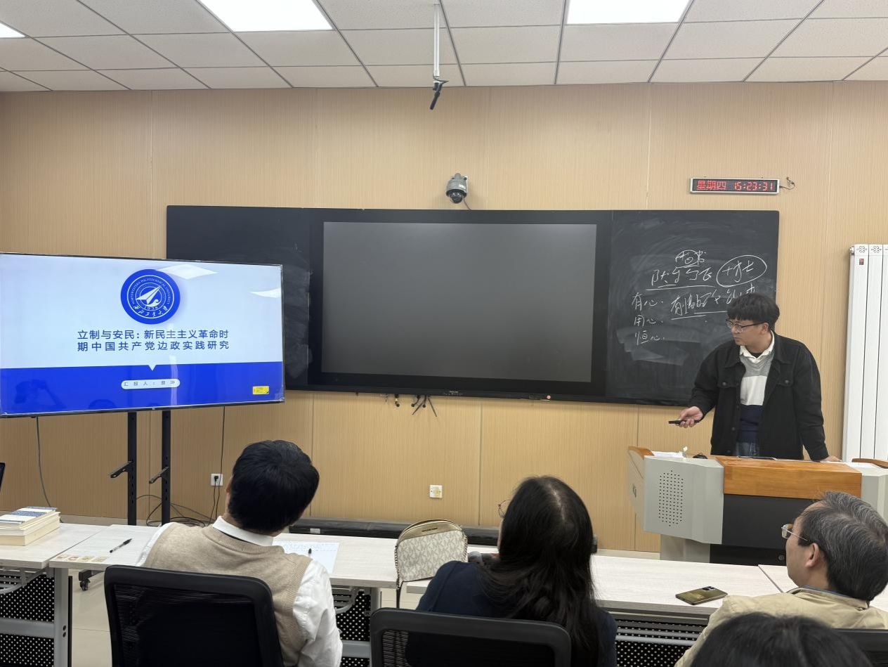 随后,博士生曹坤分享《立制与安民:新民主主义革命时期中国共产党边政实践研究》,梳理了新民主主义革命时期党在边疆地区的治理探索;硕士生孙淑颖以《1945—1947年华中野战军对“向南防御”战略的执行》为题,解析这一战略在淮河战役前的实施细节与历史意义。