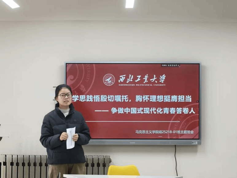 为深入学习党的二十届四中全会精神,引导青年学生将个人理想融入国家发展大局,11月17日,2025级硕士一班召开“学思践悟殷切嘱托,胸怀理想挺膺担当 —— 争做中国式现代化青春答卷人”主题班会,主题班会由张新婧主持。