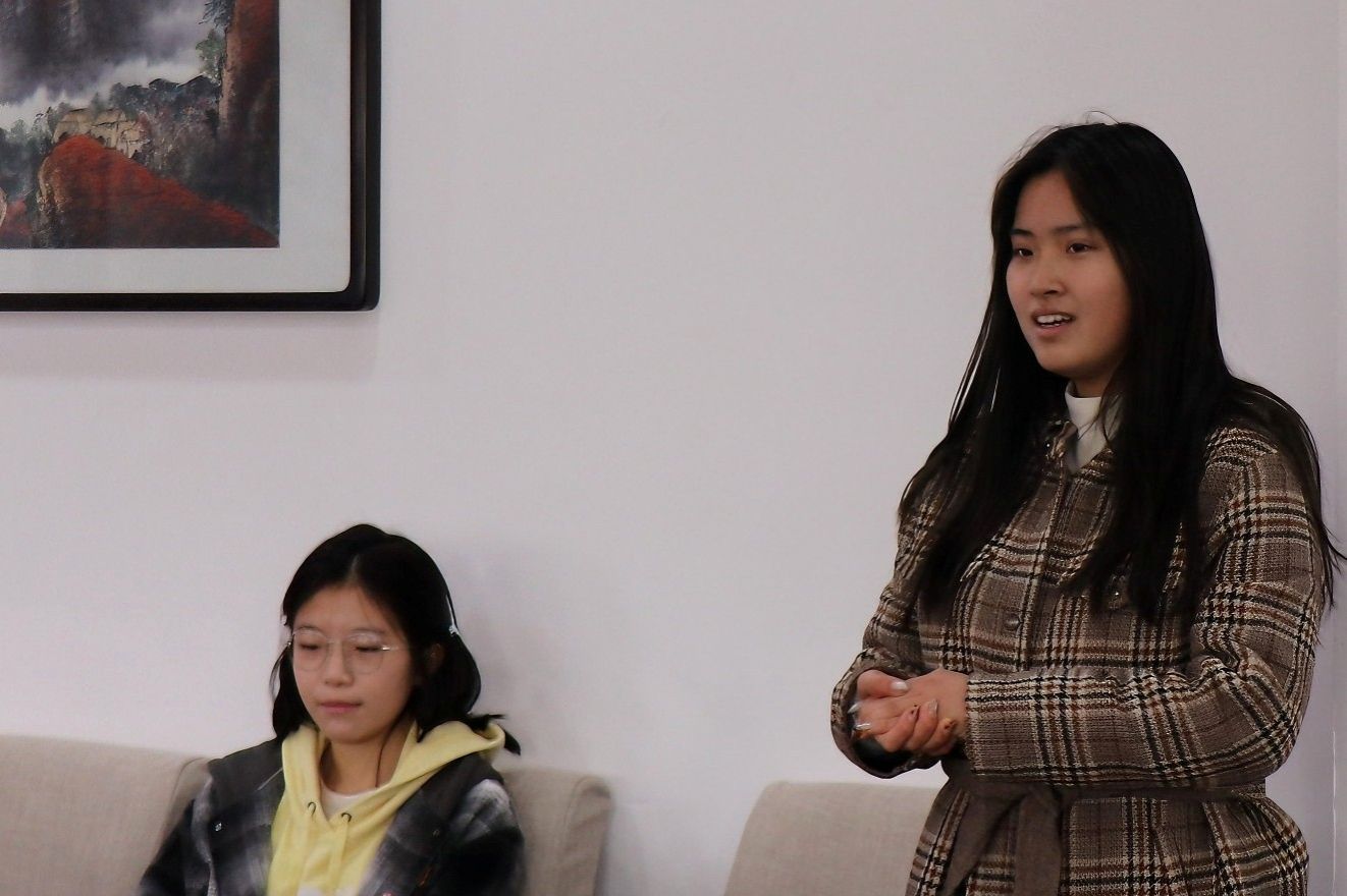 本科生代表发言阶段,徐彬慧、袁蔼玲、董诗琪、冀毓颖四位同学依次发言,向老师和同学们分享了自己入学以来的学习感悟和困惑。与会的各位老师对同学们的疑问一一作出回答。学院领导为同学们发放“每日记录”笔记本,鼓励同学们将每月每周每日的学习计划记录下来,做到日拱一卒、功不唐捐。