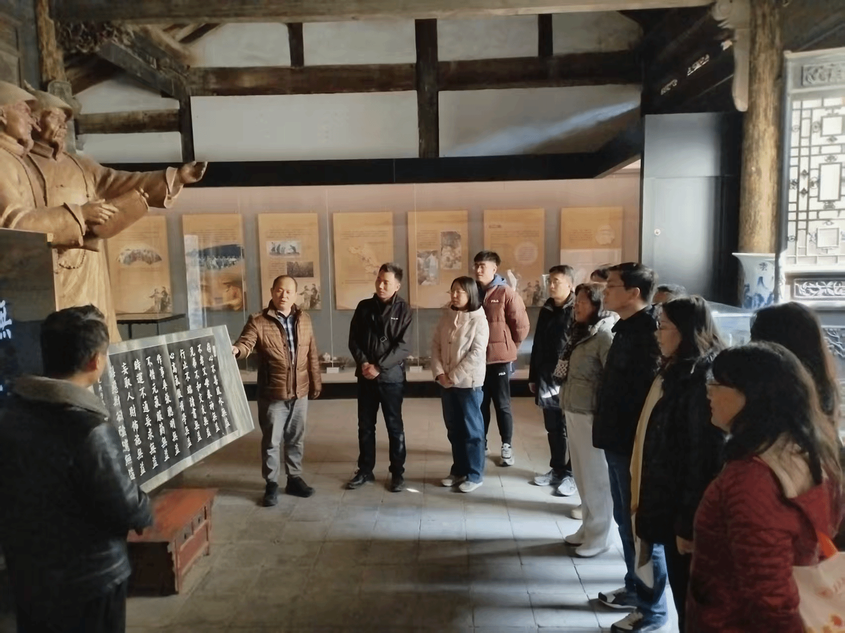 蒲城杨虎城旧居现为全国第七批重点文物保护单位,同时也是杨虎城纪念馆所在地。党员教师们通过馆内的珍贵照片、家书信札和实物展品,深入了解了杨虎城将军的成长历程:从早年反抗压迫、组建民团,到投身革命、拥护孙中山“三大政策”,主政陕西时兴修水利、创办教育,再到联合张学良发动西安事变、促成抗日民族统一战线形成的光辉业绩。同时,通过简要了解杨虎城将军的家族谱系、子女情况及军队中的蒲城子弟故事,教师们对杨虎城这一爱国将领的革命岁月、淳朴家风和红色故土都有了更立体深刻的认识。教师们纷纷表示,要将杨虎城将军的爱国情怀、革命情怀、民生情怀、教育情怀融入思政课程,引导青年学子坚定理想信念,强化责任担当,把个人理想融入国家发展大局,助力民族复兴伟业。
