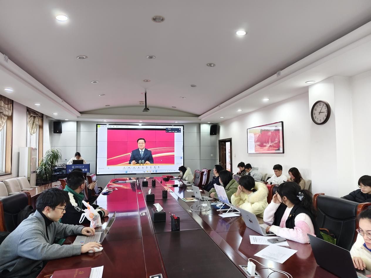 党员大会结束后,支部成员集体收看了学校组织的专题党课直播。